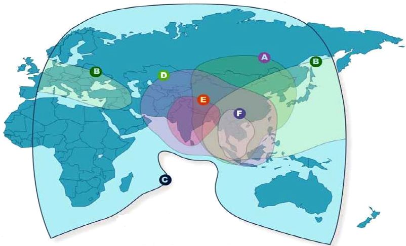 Thaicom 2/5 at 78.5°E footprint - diagram B :combined European/Asian zone footprint C
