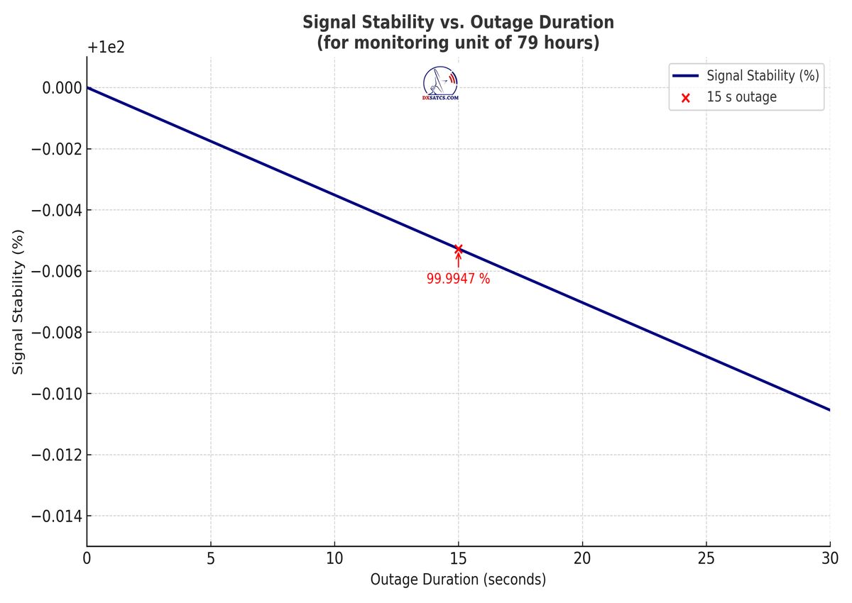 Klasifikácia dosiahnutých výsledkov na f=11 305 MHz :  Ako potvrdzuje vizualizovaná forma dokazovania v signálnom monitoringu s trvaním t = 79 hodín (čo predstavuje presne 284 400 sekúnd),výpadky v Locku alebo oscilácie kvality v okolí šumového prahu sa vyskytli v celkovom trvaní iba pätnásť sekúnd z celkových 284 400 sekúnd.To zodpovedá percentuálnej stabilite príjmu na úrovni presne 99,99 %.