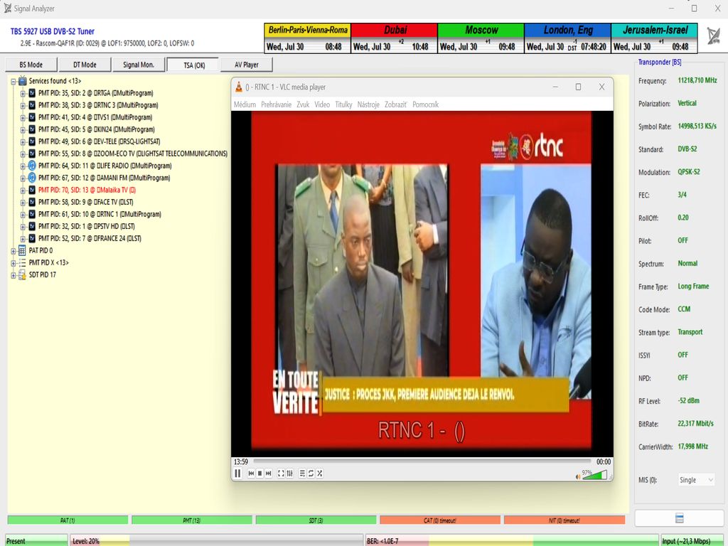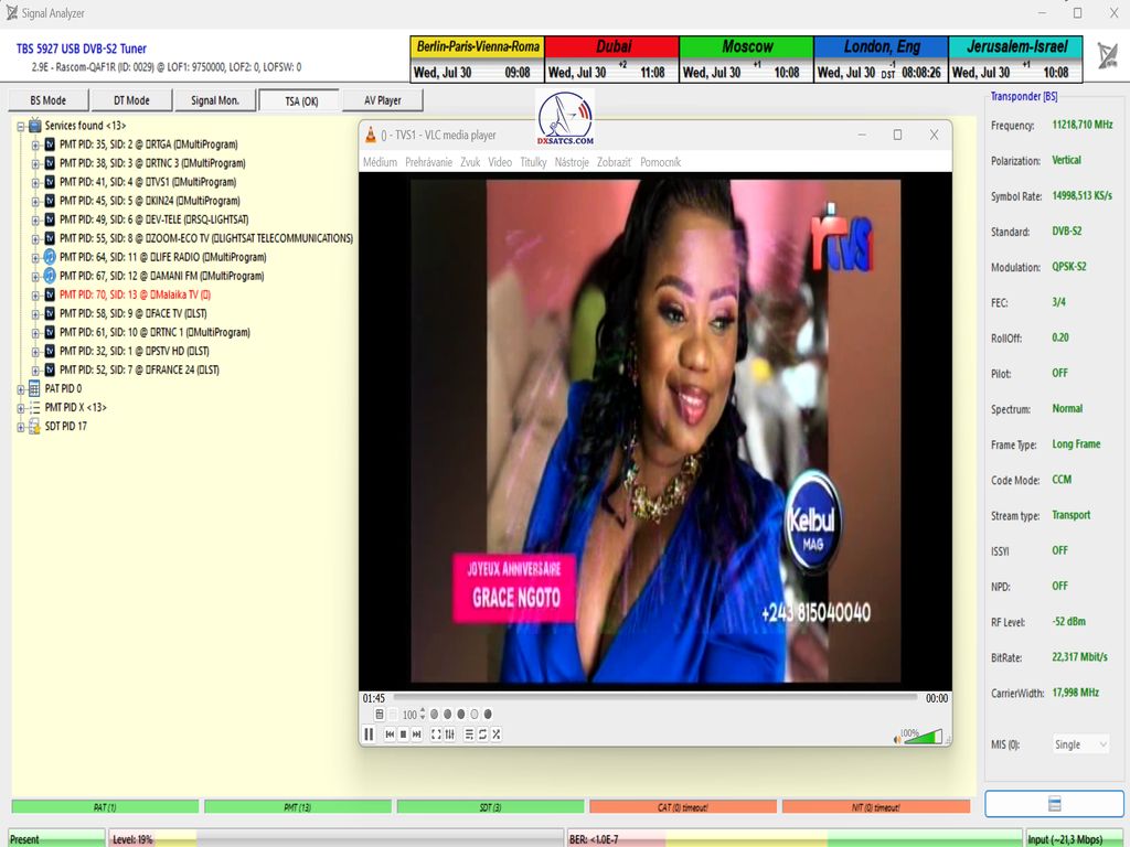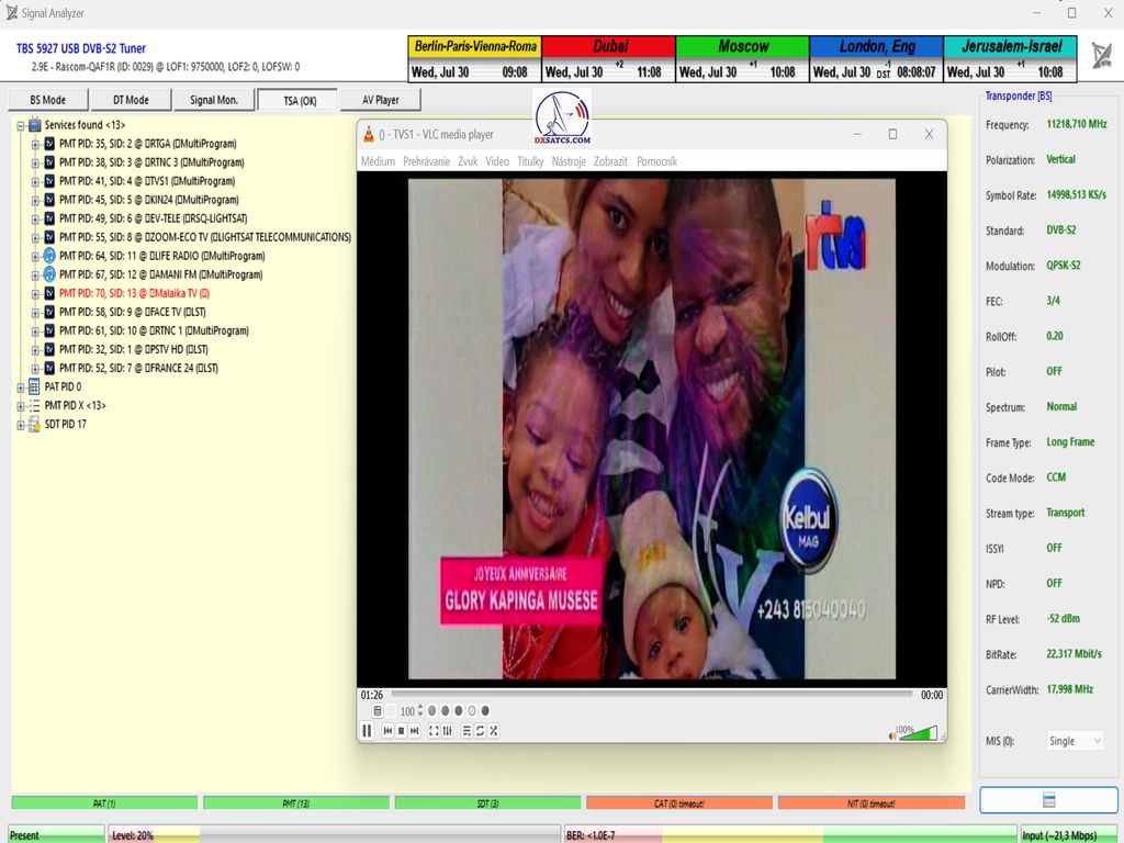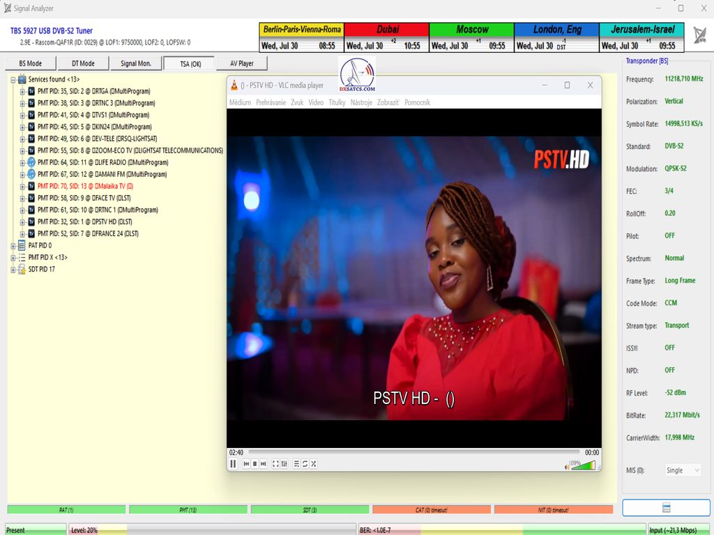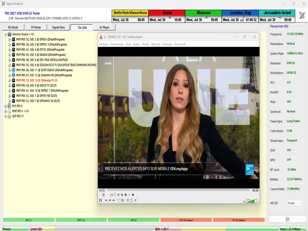 ►Current occupancy of the transport stream on frequency f = 11,218 MHz_V by the author of the Think Tank, Roman Dávid