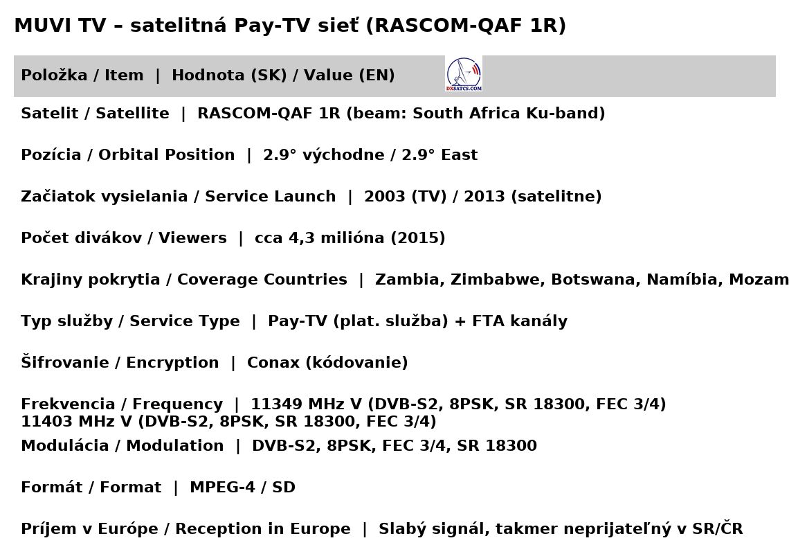 Rascom QAF 1R at 2,9°E_South Africa beam_f=11 349 & 11 403 MHz_V_DVB-S2/8PSK/FEC=3/4_SR=18 300 ksym/s _Muvi TV