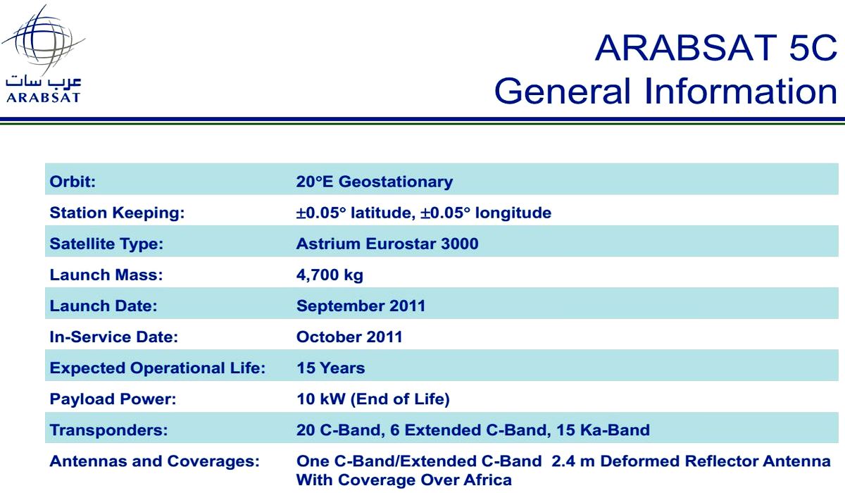 Arabsat 5C-20.0°E-KA-band :  General information  /  source : www.arabsat.com