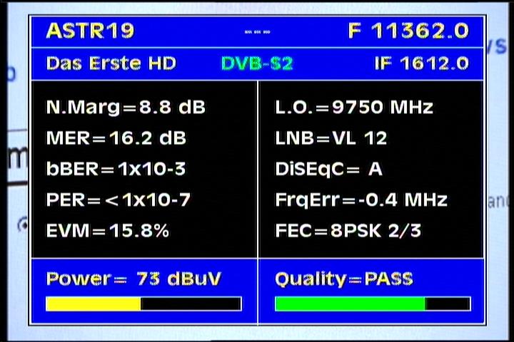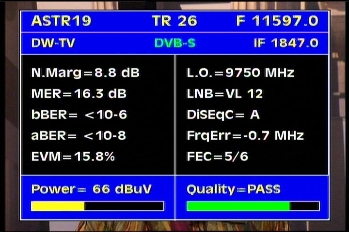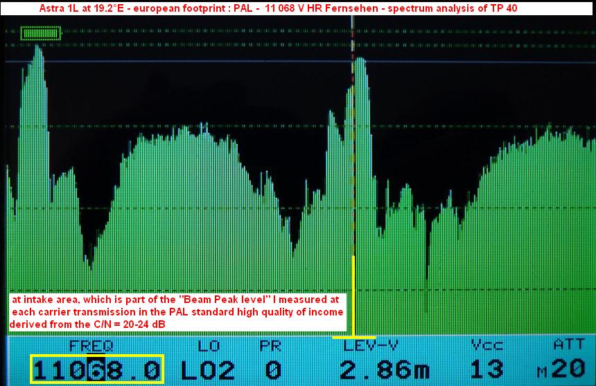 Update - Astra 1L/1H at 19.2°E - european footprint : quality of income as defined in the spectral analysis