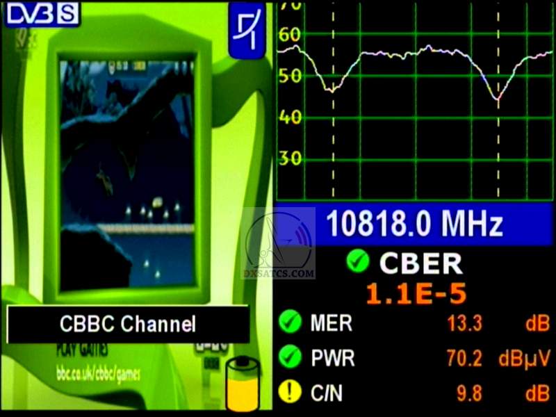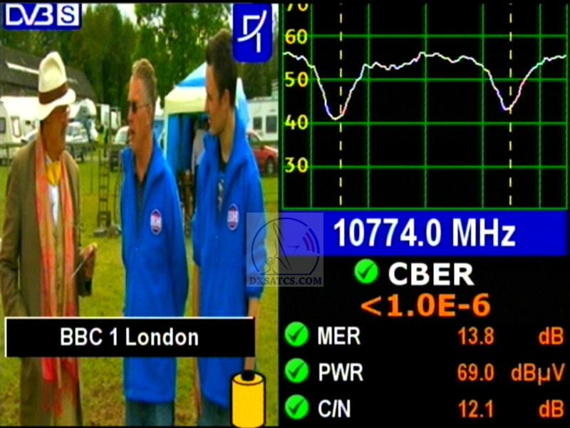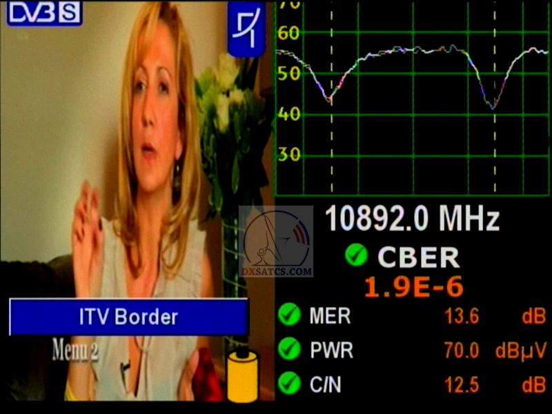 | Analyzed frequency spectrum + polarisation | 10 950 - 11 200 MHz , H+V |