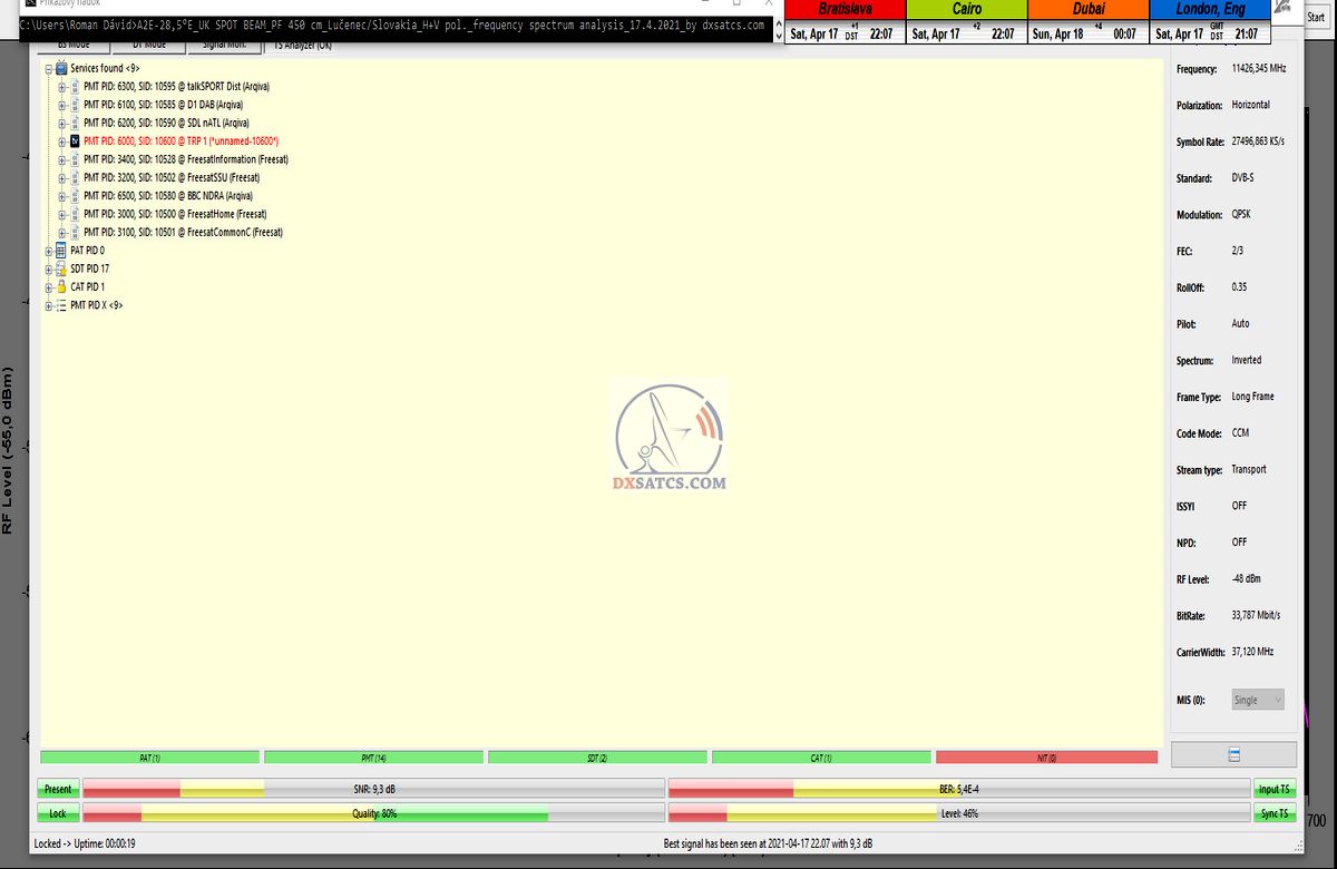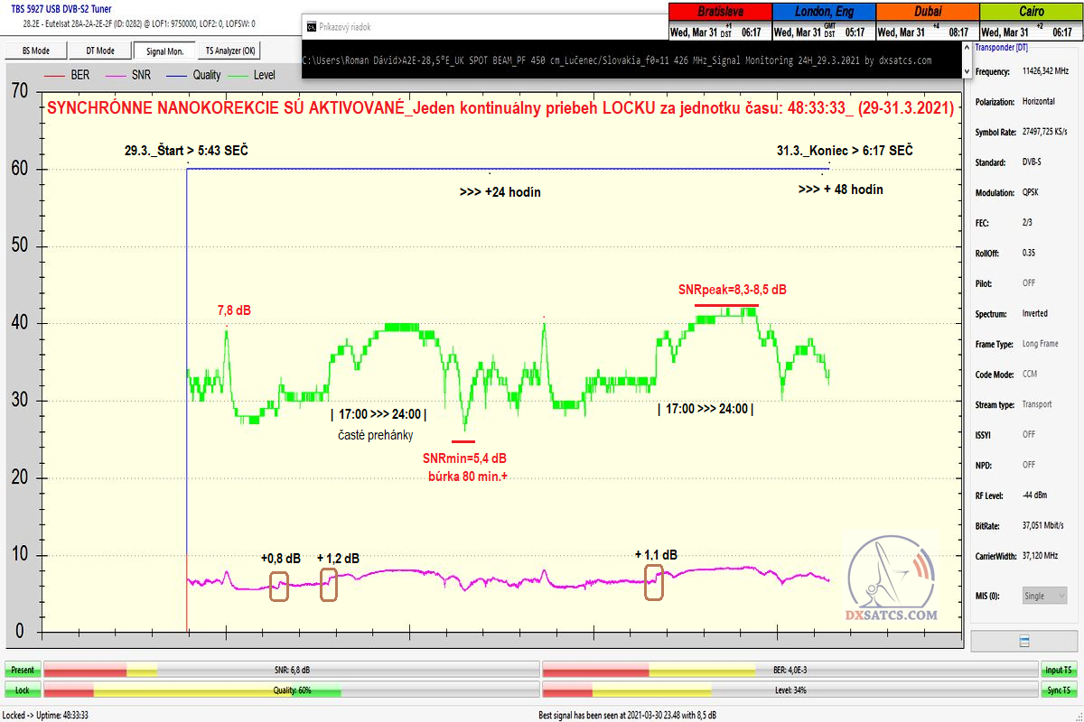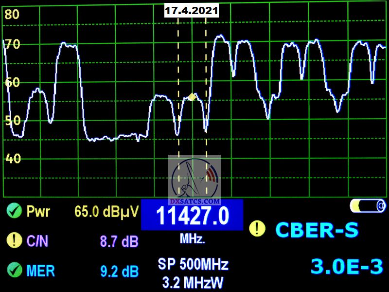 Konkrétne včera (20.4.2021) medzi 20:00 do 22:00 SEČ dosiahla špička kvality na referenčnej f0(stred)=11 426 MHz