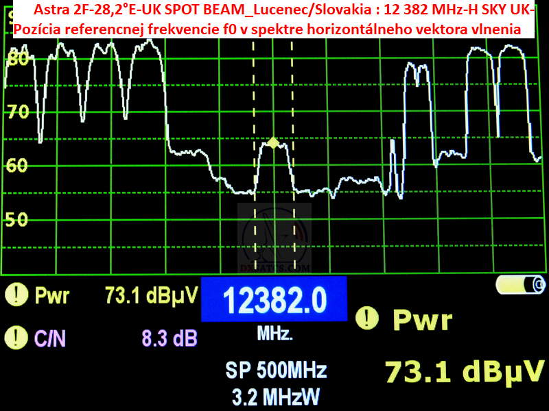 12 382 MHz _H_ SKY UK : AKTÍVNY Signálny model > 24/7_ MER/SNR=6,5-9 dB_toto je referenčná frekvencia "f0"