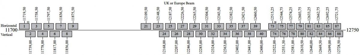 10 950 > 11 750 MHz-UK SPOT BEAM  - V+H.pol. : frequency spectrum analysis