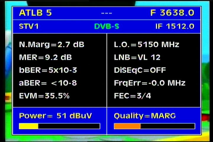 Atlantic Bird 3 at 5.0°W - panatlantic footprint : spectrum analysis & measurement results