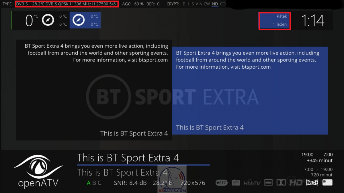 už na piatich (z celkovo šiestich) nosných frekvenciách v tv štandarde DVB-S/MPEG-2_konkrétne 11 306 MHz-V+H a 11 344 MHz-V+H družice Astra 2F
