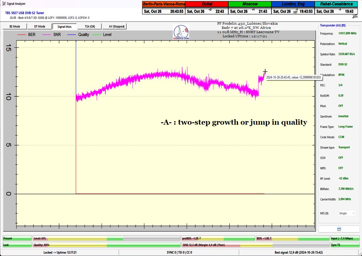 Badr 7 at 26.0°E-Northwest Africa-satellite reception-Central Europe: "Synchronous Nanocorrections" – A Technological Invention in the Practice of Satellite Reception by Roman Dávid from Lučenec