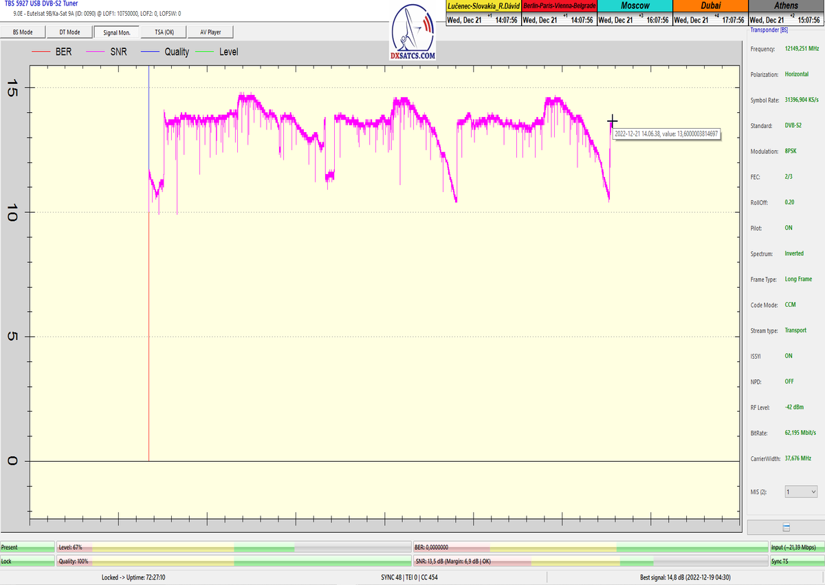 špičku kvality pri SNR=14,6 dB o 03:56+ SEČ dňa 21.12.2022_rezerva v kvalite osciluje okolo 8 dB + online video dôkaz
