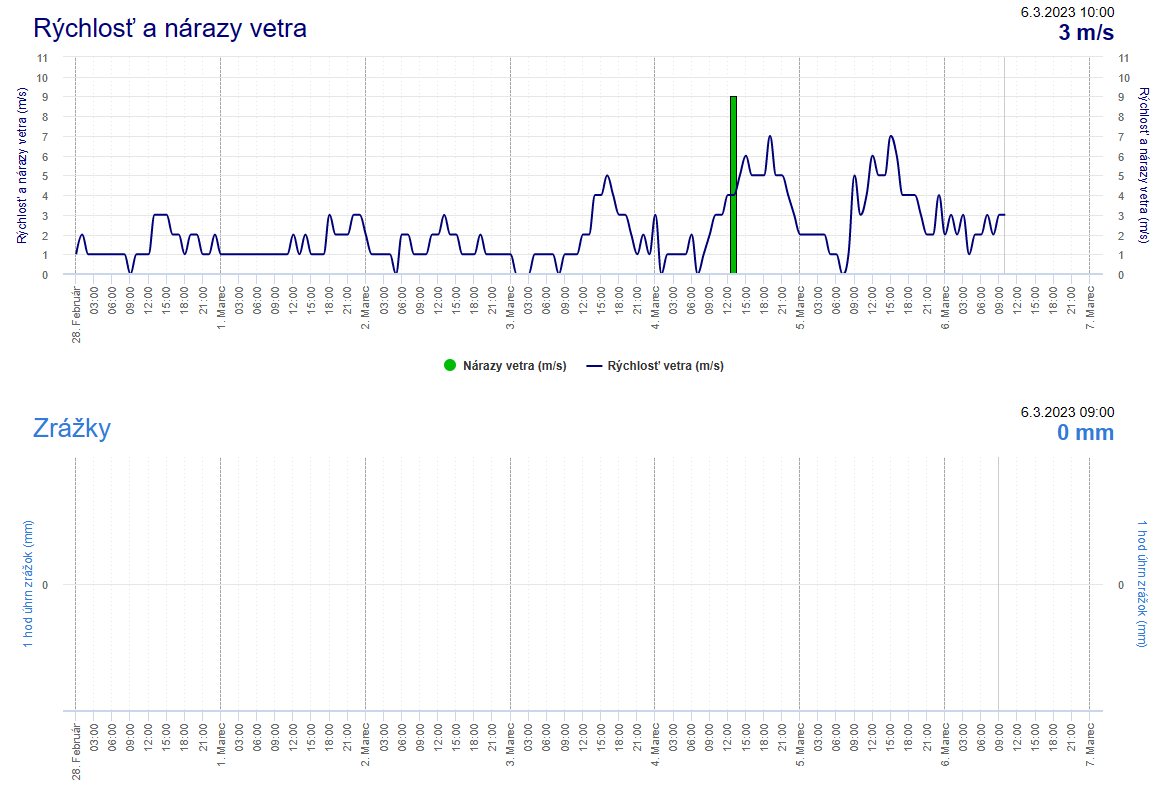 ►Stav atmosféry : na základe meteogramov zo zdrojov shmu.sk môžem potvrdiť že počas troch monitorovaných úsekov od 7 do 9.5.2023 prevládalo jasno až polojasno bez zrážok,pri nadpriemerne vysokej rýchlosti vetra okolo 9 m/s dňa 8.5.2023 a vonkajšej teplote od 10 do 21°C.