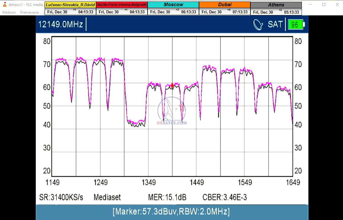 | Analyzed frequency spectrum + polarisation | 12 111 - 12 466 MHz , linear -V- |