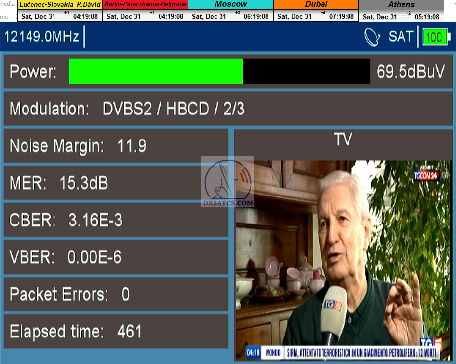 ►zámerne beží na pozadí meraní vysielanie TGCOM 24+R101 s kódom o aktuálnom čase,za účelom vylúčenia podvodov a verifikáciu správnosti času