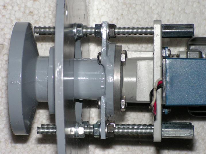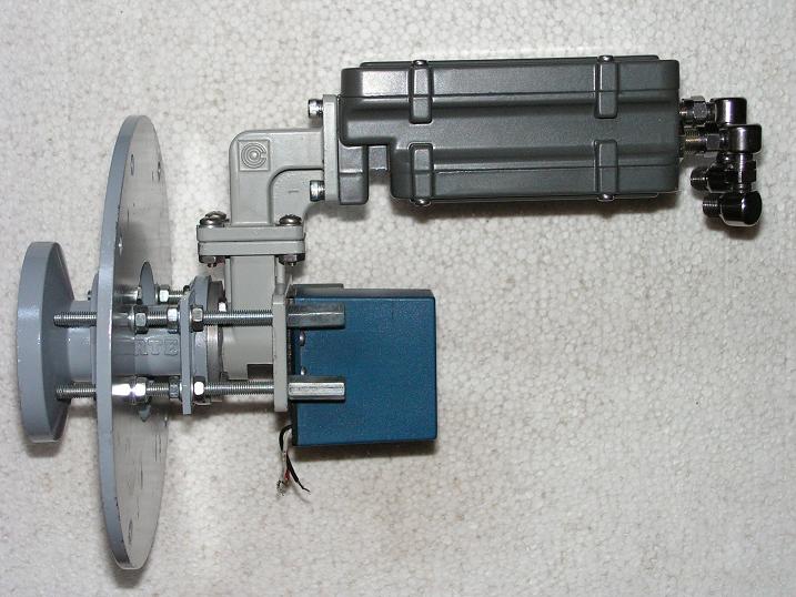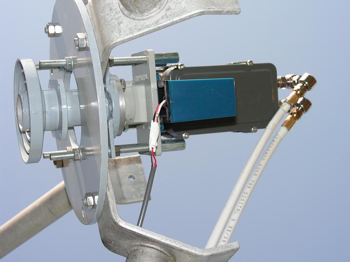 2,Motorický polarizačný rotor CHAPARRAL WIDEBAND KU-ROTOR,ktorý je určený pre definovanie akejkoľvej polohy polarizačných rovín SKEW V a H v pásme KU .Chaparral dodáva na trh len prevedenie polarizačného rotora so závitovým spojom na uchytenie ožarovača a nakoľko som nemal k dispozícii z hľadiska anténneho pomeru f/D = 0,4 ožarovač so závitovým spojom,do vstupného vlnovodu som vsunul a pomocou tekutého kovu zafixoval vstupný vlnovod C120 s klasickým štvorbodovým uchytením s rozmerom spojov 26,4 mm na ktorý viem prichytiť akýkoľvek ožarovač alebo vlnovod napr : depolarizačný ...