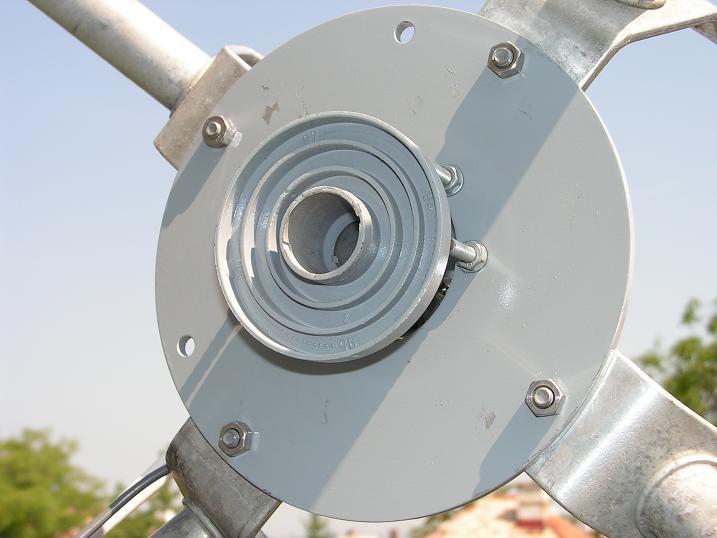 1,Ožarovač určeny pre stredovú anténu PF CHANNEL MASTER RX 300 so skalárnymi prstencami v rozsahu 74 mm s priemerom vstupného vlnovodu 24 mm s výstupom C120,ktorý som musel mechanicky upraviť - prispôsobiť na štvorbodové uchytenie do plochého držiaka kruhového tvaru Chaparral POLAR AXIS,ktorý je nevihnutné použiť nakoľko aj pri tejto anténe Channel Master sú rozpätia štyroch nosných LNB ramien definované na rozmer ožarovača pre pásmo C a nie KU .