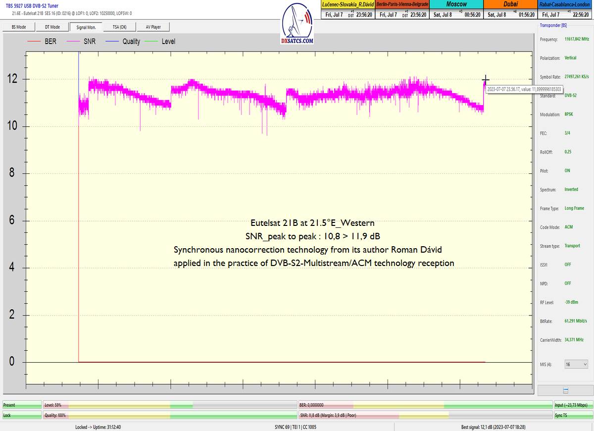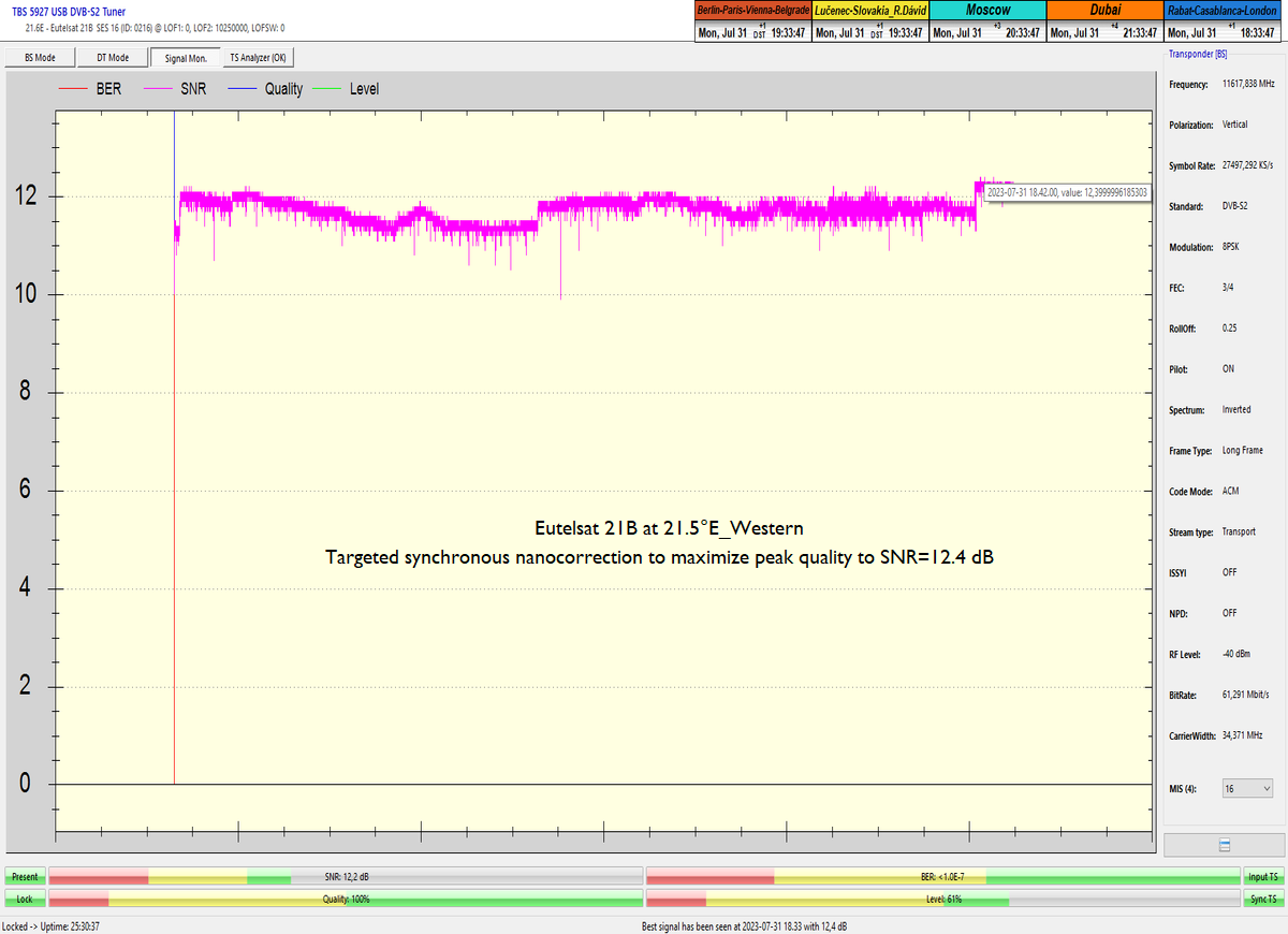 technológie Synchrónnych nanokorekcii nie je v otázke stability príjmu rozhodujúci,špičku kvality viac ako SNR=17 dB na f=12 466 MHz by som bez