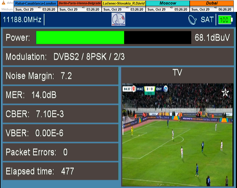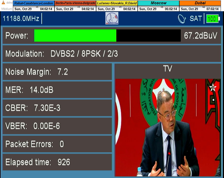 on the frequency of the Moroccan provider SNRT Arryadia> f=11 188,4 MHz_H-Eutelsat 21B-21.5°E.These results will serve as the foundation for