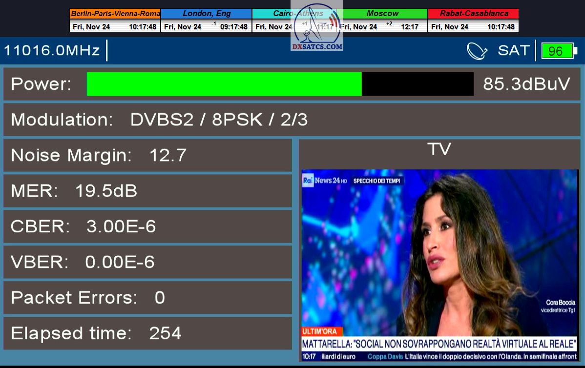 Na príklade dokazovania v podobe signálneho monitoringu paketov Rai a Canal+,vysielaných v technologickom štandarde DVB-S2/Multistream z objektu Eutelsat 5 West B na 5,0°W,Vám dnes dokážem že som účinne a hlavne stabilne transformoval relatívne vysokú intenzitu vyžiareného výkonu EIRP na výslednú kvalitu ,ktorú kvantifikujem pomerom signálu k šumu SNR=20>21+ dB-pri aplikovanej konfigurácii modulačných