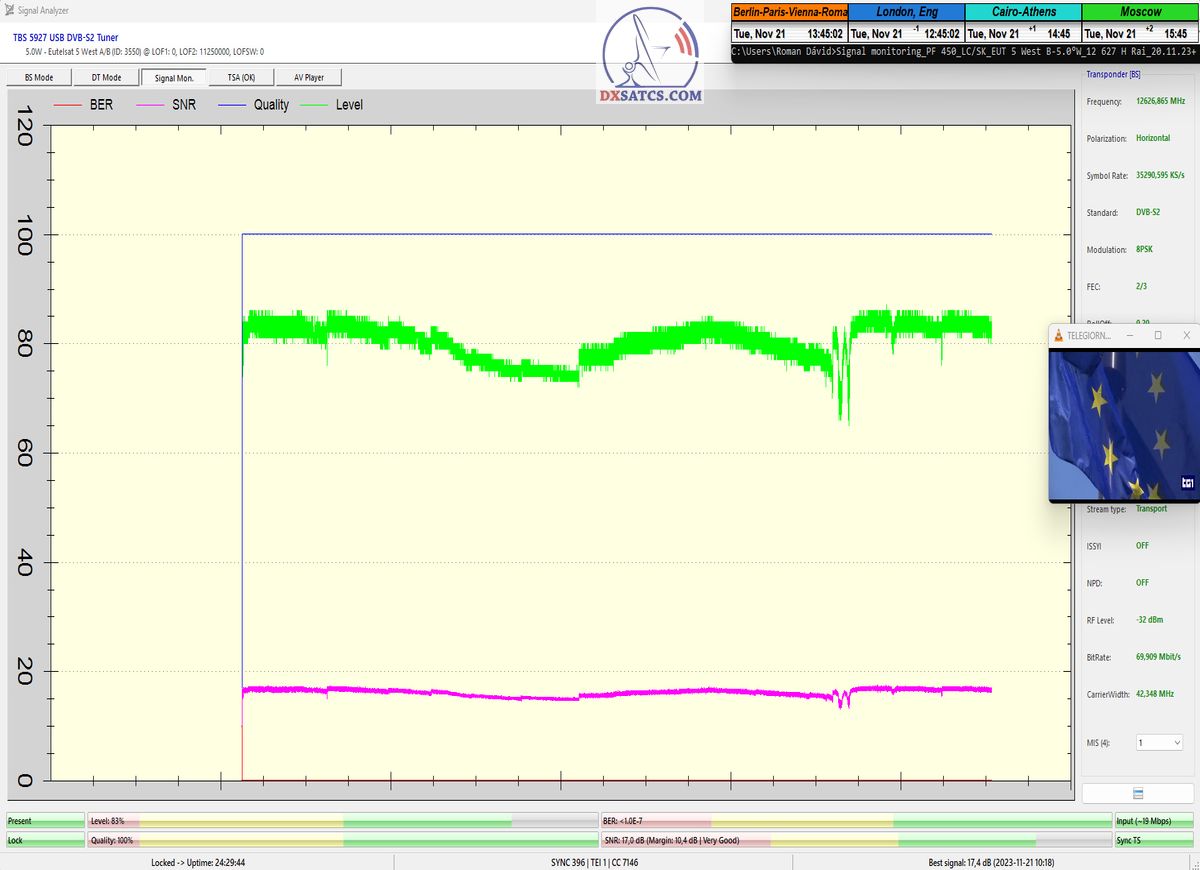►►Eutelsat 5 West B at 5.0°W-Transalpine-Multistream : Proving in the monitoring unit t=24 hours