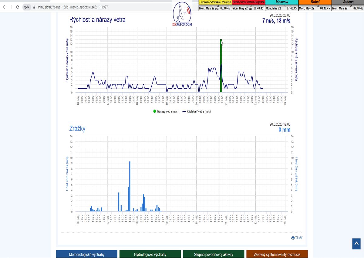 ►The weather situation during the monitoring period_19.5.2023 > 22.5.2023 : source_ shmu.sk