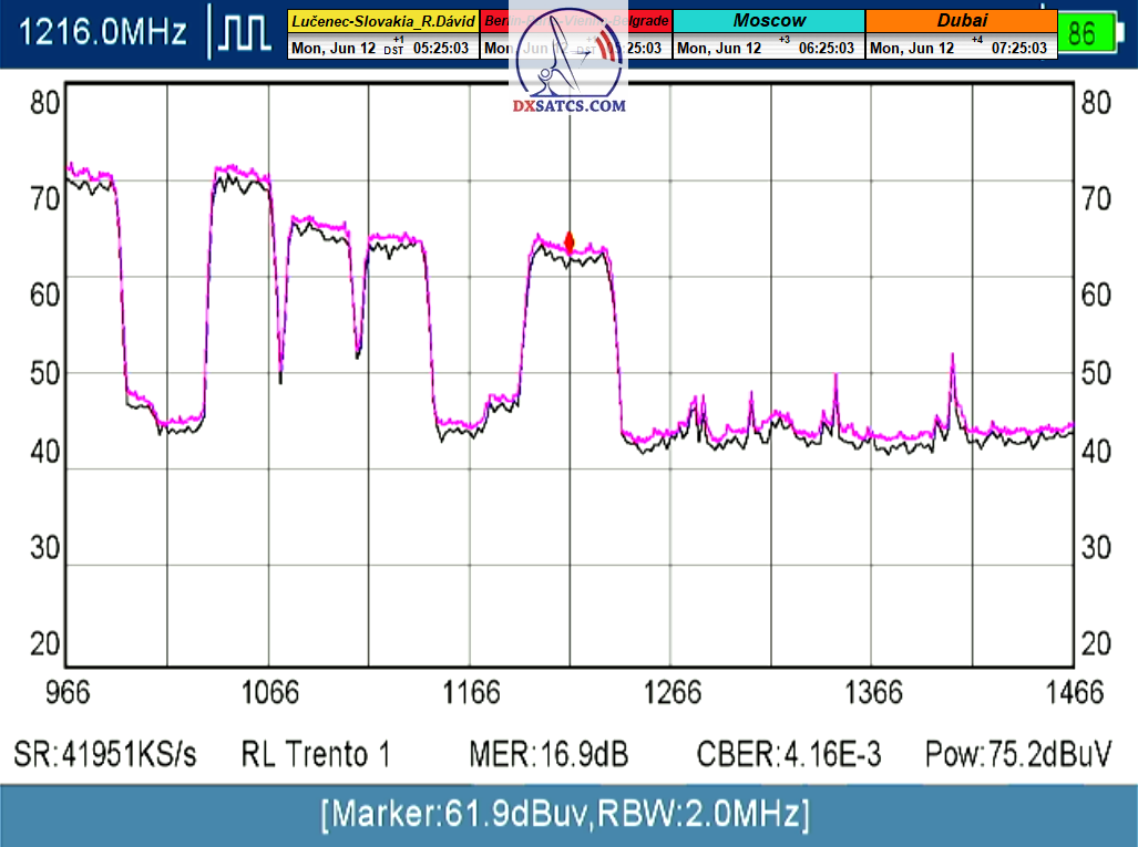 a každodennom normále,ktorý koreluje so špičkou kvality v jednotke SNR/MER okolo 17 dB konkrétne na frekvencii f=12 466 MHz_V.