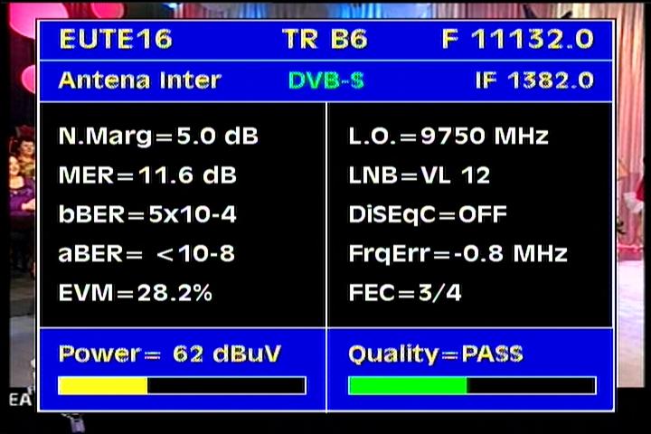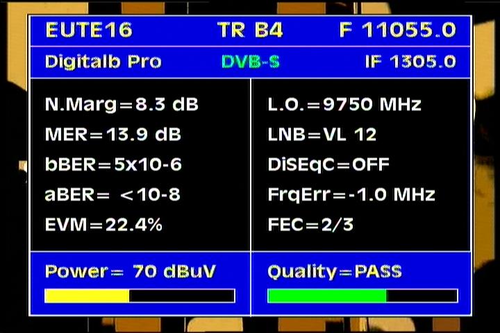 quality of Mer=15-18 dB for each in the range of vectors V and H present carrier transmission,which means a real increase in gain to the