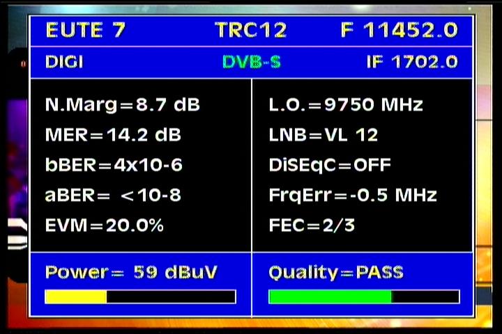 Eutelsat W3A at 7.0°E : relative quality