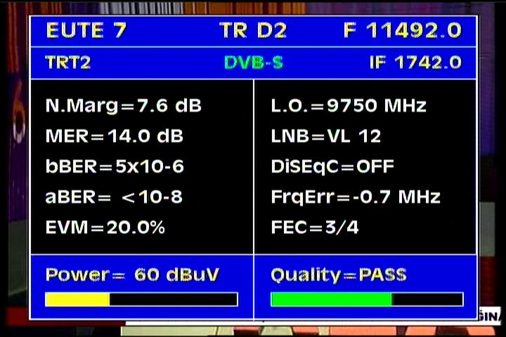 Eutelsat W3A at 7.0°E - Europe B footprint : 11 492 V packet Digiturk