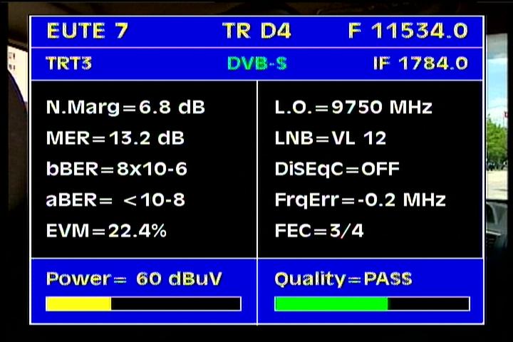 Eutelsat W3A at 7.0°E - Europe B footprint : 11 617 V packet Digiturk