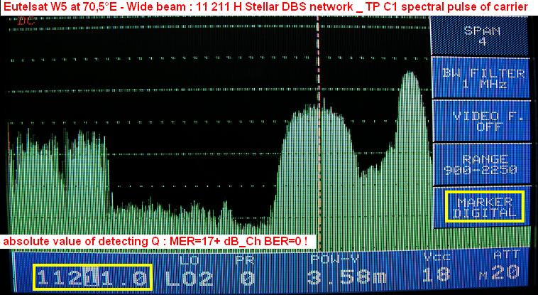 Eutelsat W5 at 70.5°E - Wide beam : 11 211 H Stellar DBS Network _ MER=17,8 dB _ Ch BER=0.00