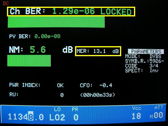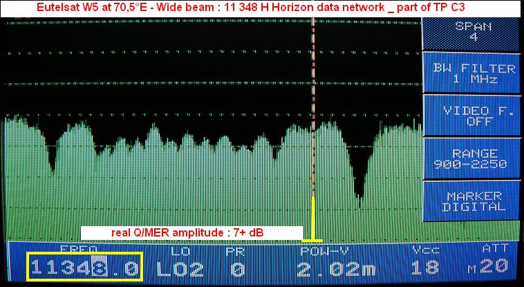 Eutelsat W5 at 70.5°E - Wide beam : 11 348 H Horizon data service _ MER=13,1 dB _ Ch BER=1.29e-06