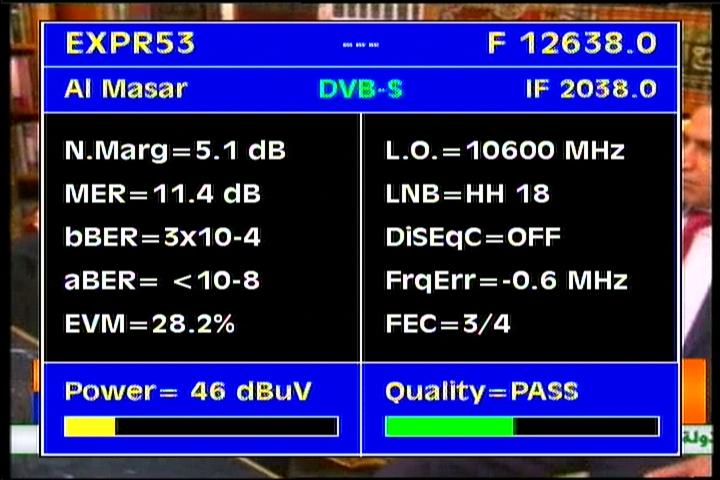 Express AM22 at 53.0°e - S2 beam : 12 638 H Al Masar TV