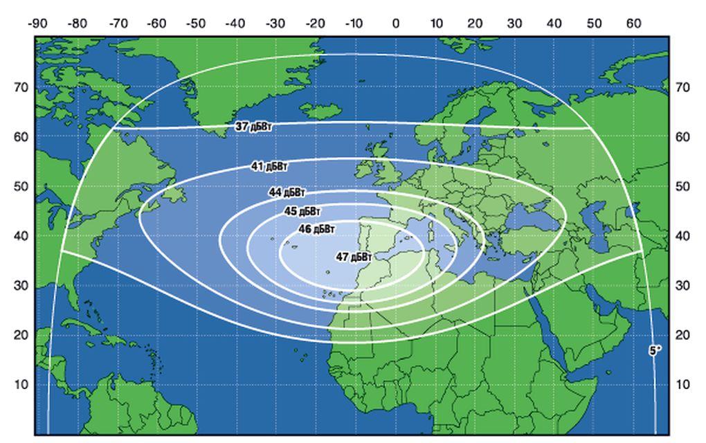 Express AM44 at 11.0°W - global footprint : 3 662 R RSCC Network Russia