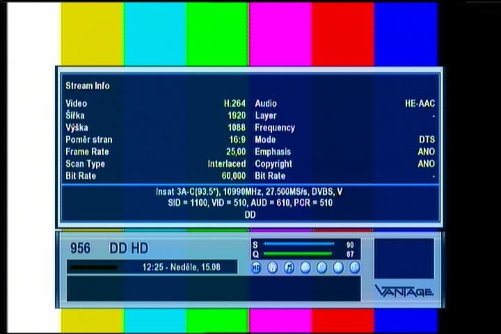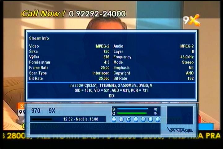of reception follows.Average reception quality, expressed in the unit MER=9.5-11.5 dB (with occasional peak at MER=15+ dB)