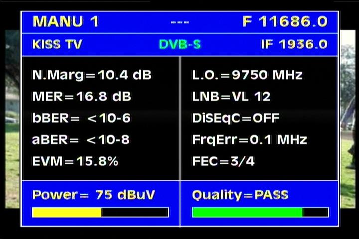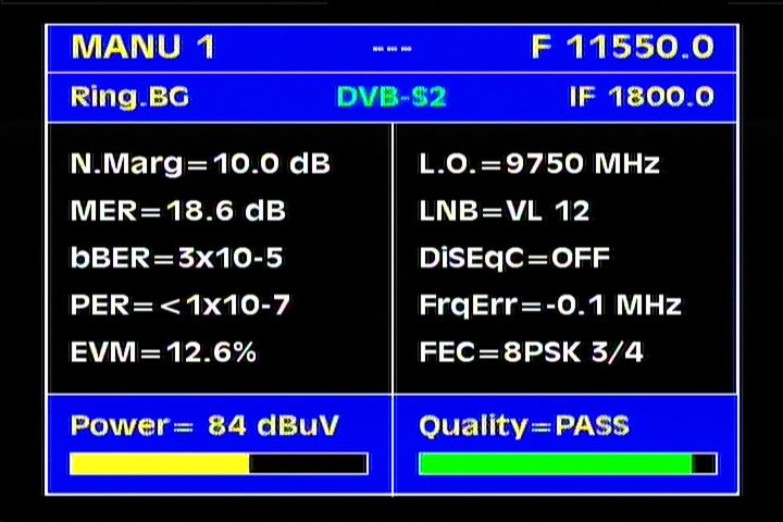 following measurement results in the carrier in the format DVB-S2 : stable zero level error packets PER=1x10-7 ,