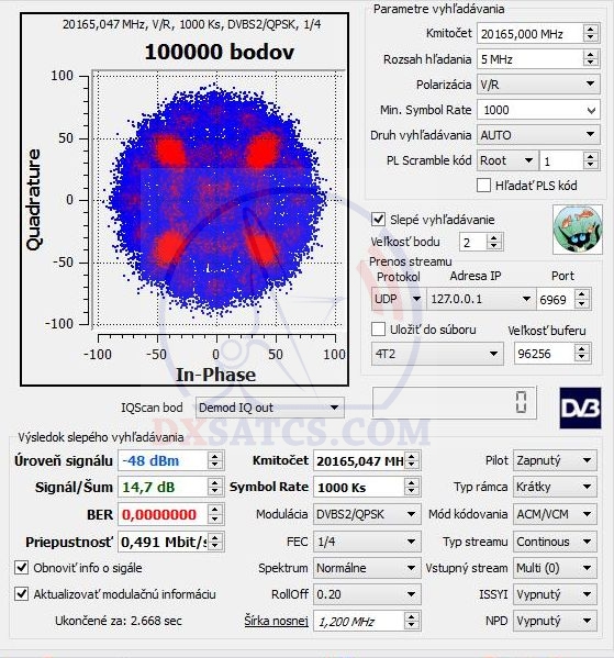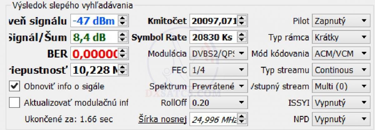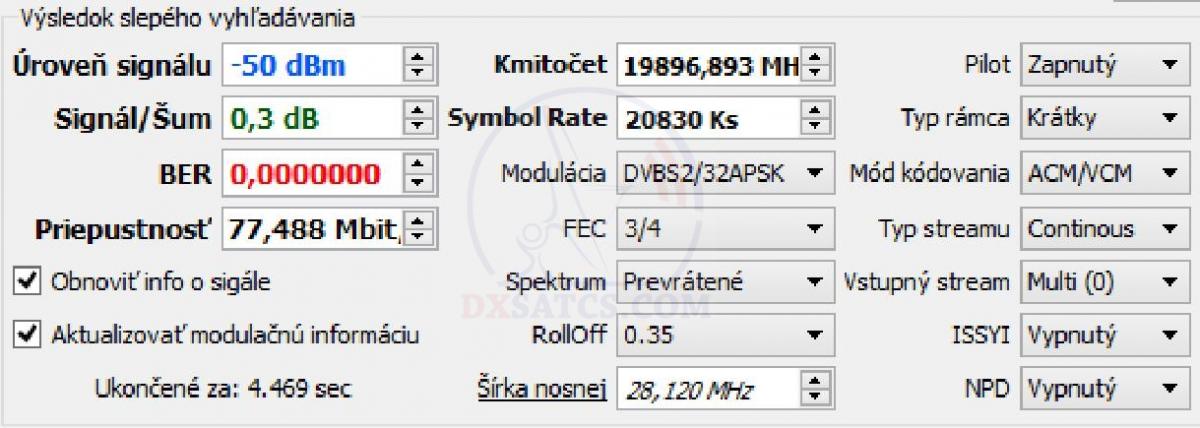 Šírka pásma respektíve dátová kapacita okolo pätnástich nosných v štandarde DVB-S2,ktoré som v zemepisnej oblasti mesta Lučenec