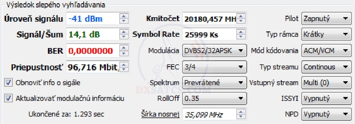 identifikoval až 4 "nemodulované" identifikátory/majáky namiesto dvoch v LHCP spektre (tak ako to uvádza prevádzakovateľ),ktoré až