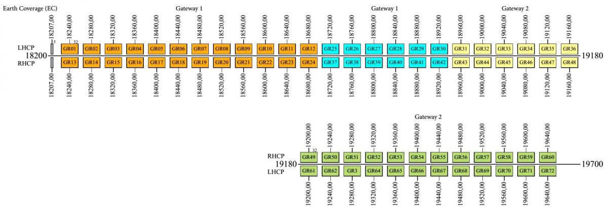 Inmarsat 5 F1 - 62.6°E-Frequency plan-KA band : source : www.inmarsat.com