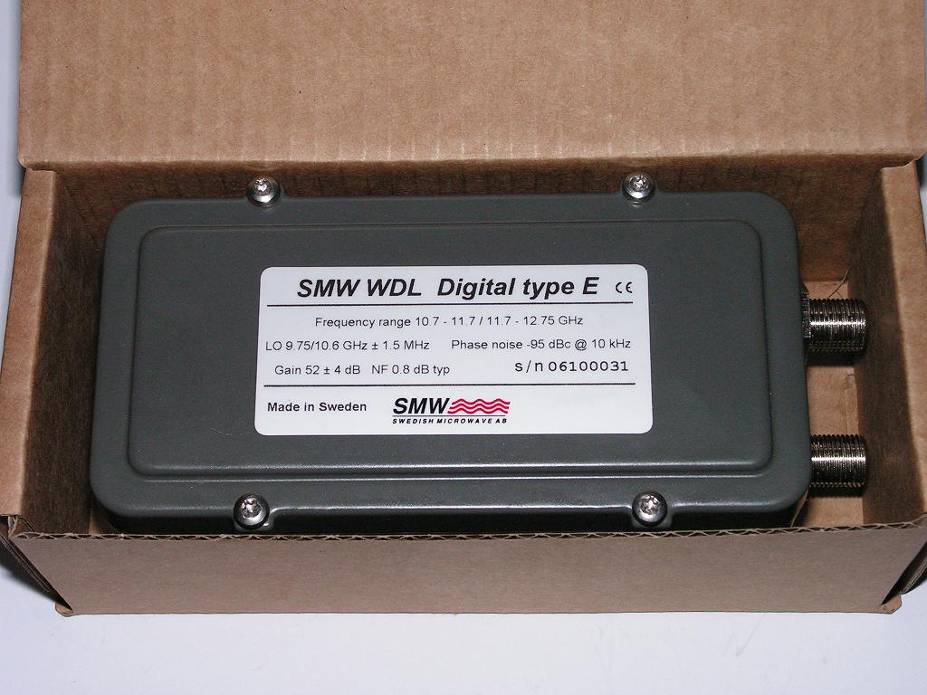 PREDSTAVENIE JEDNÉHO Z NAJLEPŠÍCH JEDNOPOLARITNÝCH KONVERTOROV PRE PRÍJEM V PÁSME KU VO SVETOVOM MERADLE S TECHNOLÓGIOU DRO OD ŠVÉDSKEHO VÝROBCU SWEDISH MICROWAVE - WDL DIGITAL DUAL OUTPUT TYP E - S EXTRA NÍZKOU ÚROVŇOU FÁZOVÉHO ŠUMU PHASE NOISE -95 dBc @ 10 kHz A S VYSOKOU STABILITOU FREKVENCIE LOKÁLNEHO OSCILÁTORA +/- 1,5 MHz,KTORÚ MI NA PRIAME ZADANIE VYHOTOVILI V LABORATÓRIU SMW V MESTE MOTALA - ŠVÉDSKO.
