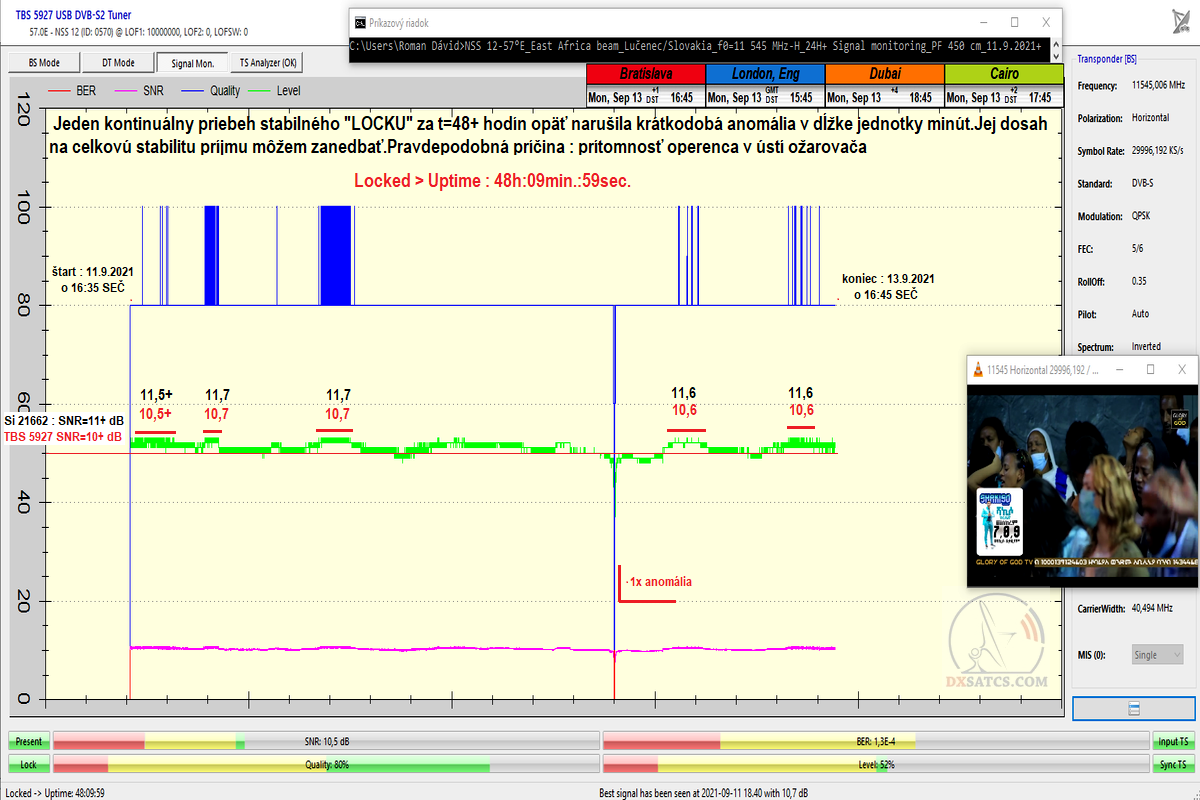 1,doteraz nikdy nedosiahnutou typickou výškou kvality od SNR=11,3 dB do SNR=12,2 dB počas celého dňa (špička kvality SNR=12,9 dB)