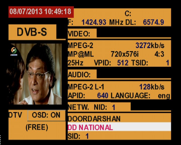 3 725 @ 1 424 MHz @ SPAN 100 MHz : 93.5°E Doordarshan India