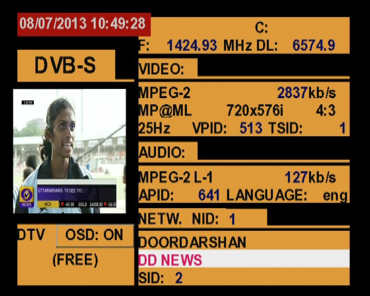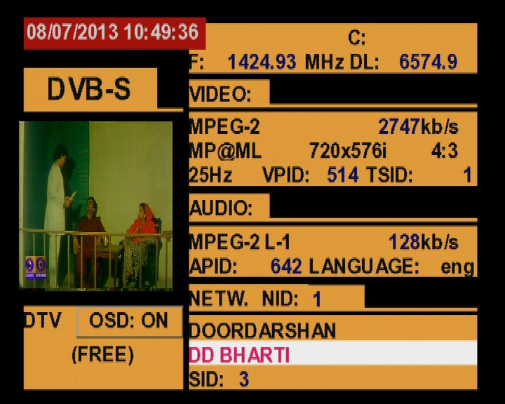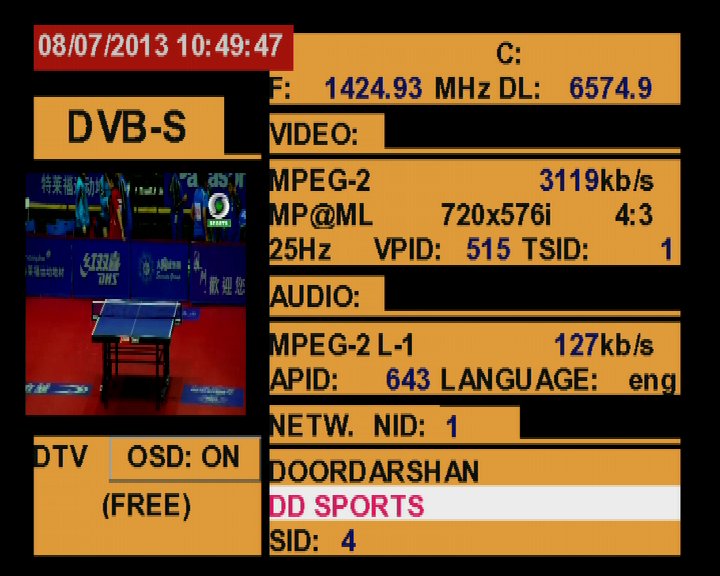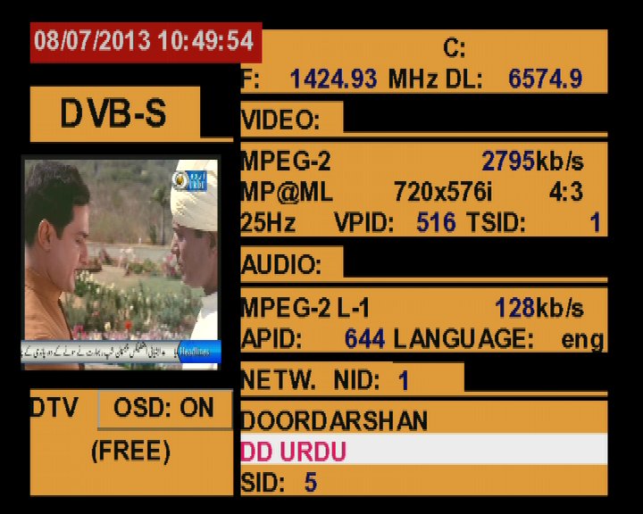3 725 @ 1 424 MHz @ SPAN 500 MHz : 93.5°E Doordarshan India
