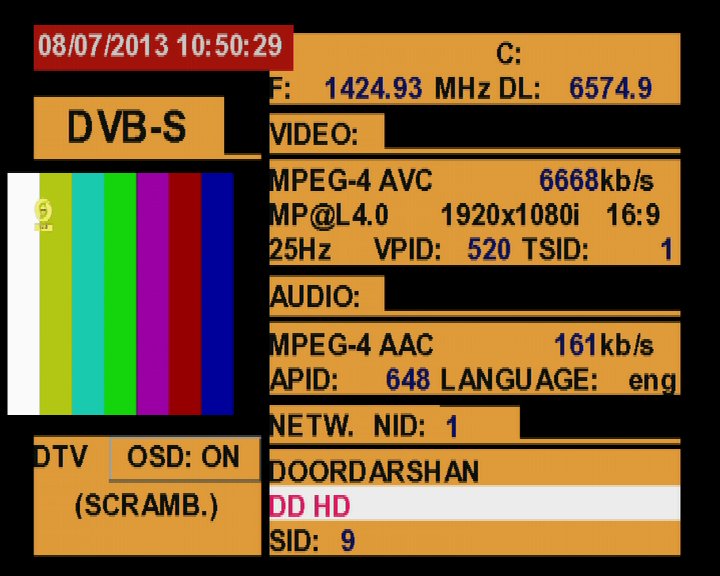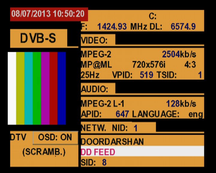 Insat 4B at 93.5°E-3 725 H DD Doordarshan : Promax TV Explorer HD DTMB-stream+traffic analysis ....