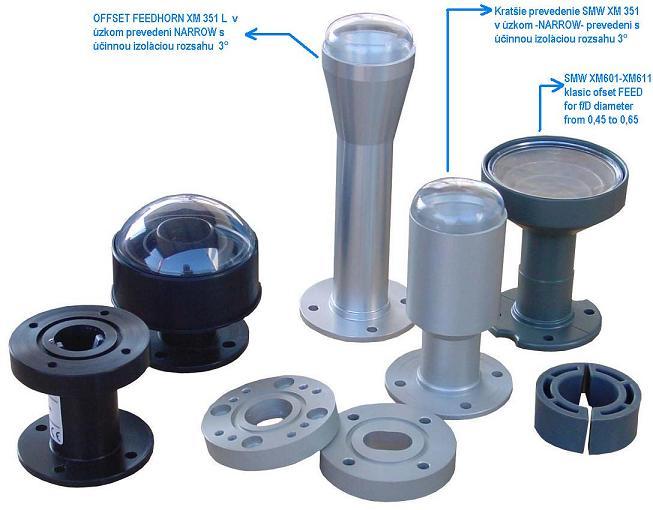 obr č.1 : 2, Ofsetový ožarovač s vonkajším priemerom 56 mm,ktorý je konštrukčne prispôsobený na vhodné ožiarenie ofsetových anténnych plôch s f/D od 0,5 do 0,7 s vonkajším priemerom 55 mm,ktorého vlastnosti som odskúšal pri inštalácii vysoko ziskovej a v súčasnej dobe jednej z najlepších ofsetových antén vôbec na trhu typu ANDREW RX 243 spolu s jedno polaritným profesionálnym konvertorom SWEDISH MICROWAVE SMW X-LINE DRO s impedančným prispôsobovacím kruhom C120 na WR 75 medzi ožarovačom a LNB.