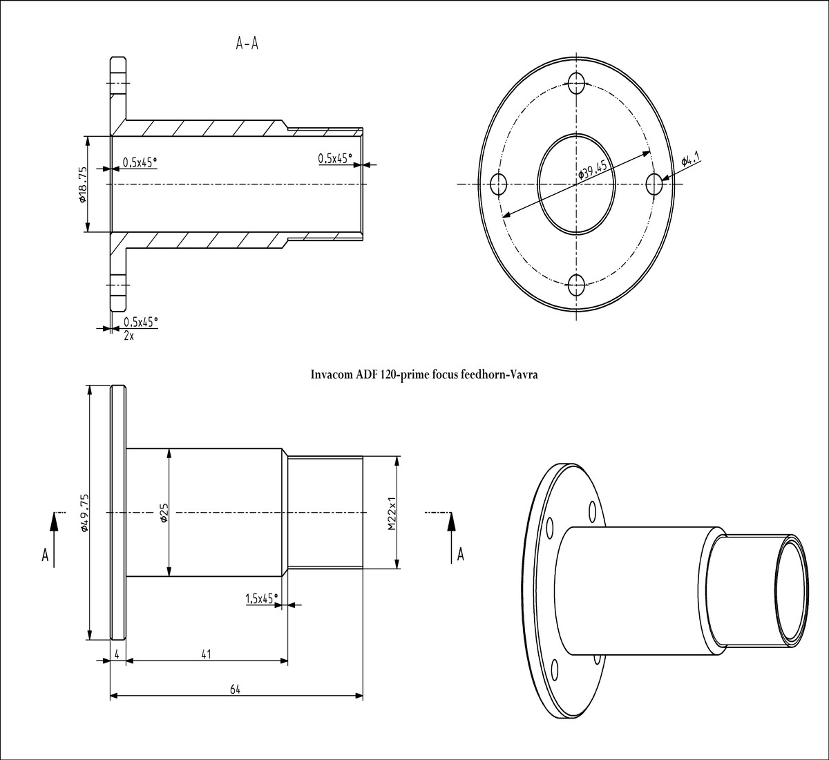 a,Feedhorn Invacom ADF-120_mechanical drawing: Rozmery ožarovača pre stredové antény