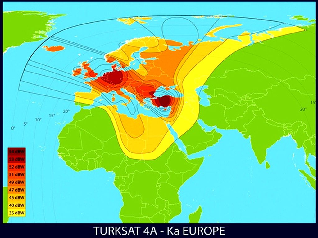 ►►T4A-Turksat-4A-λ=42°E-KA band reception : orbital location , coverage , polarisation , transponders ...