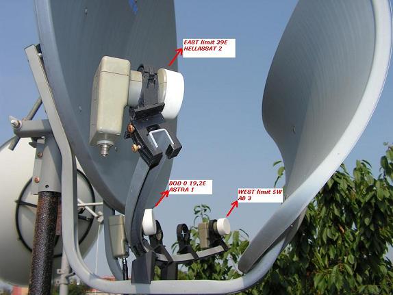 Požadujete azimutálny rozsah od Astry 3A 23,5°E po Telstar 12 na 15°W čo je rozsah 38,5°.Montážny postup je samozrejme rovnaký ako som Vám včera popísal ale dôležitou zmenou je nutnosť nastavenia SKEW POLOHY ANTÉNY zo zadnej strany na údaj 81° !!!,lebo inak vám postavenie LNB na ramene nebude kopírovať maximálnu odrazenú signálnu energiu ale len čiastočnú čo v praxi znamená že z pôvodných napr. 9,5 dB na Astre 3A dosiahnete len 6 dB SNR s meracím prístrojom Satlook Micro+.