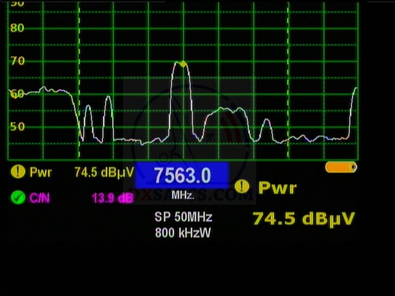 WGS-2 - 60.0°E-X band : 3x Beacon frequency in the part of the LHCP spectrum :  7 599 MHz , 7 600 MHz , 7 601 MHz