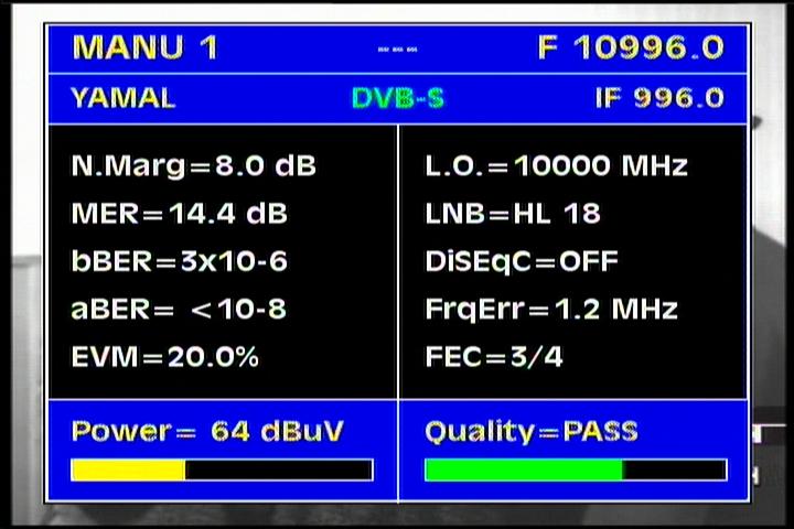 Yamal 201 at 90.0°E : 11 057 V Gazprom network _ MER=11.3 dB _ NM=4.8 dB